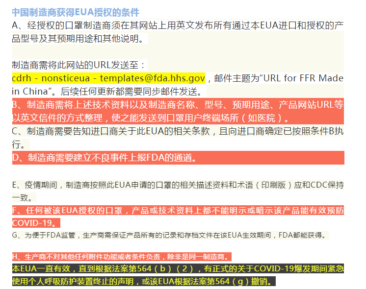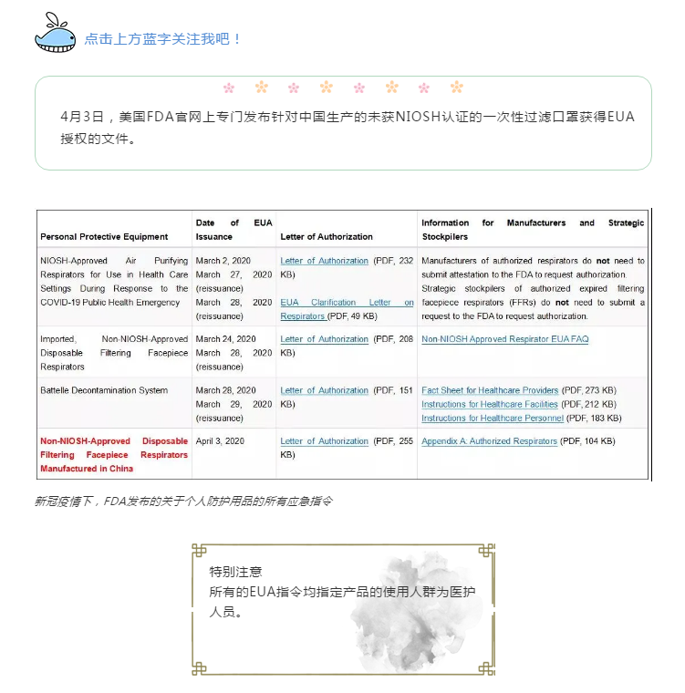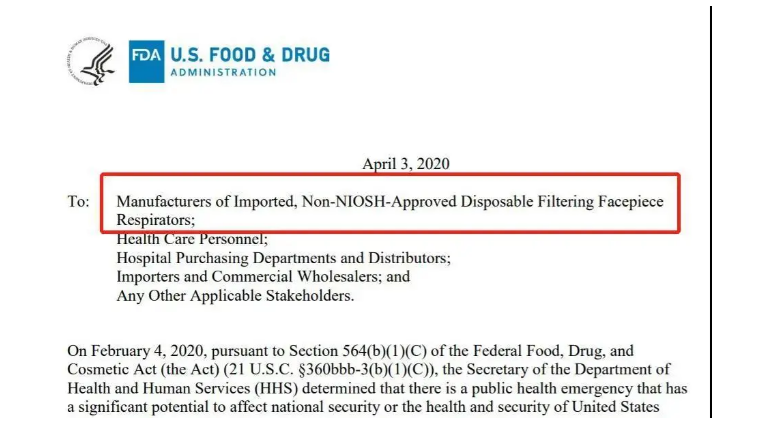 口罩出口美国新政策,中国标准获得FDA EUA授权(4月3日)