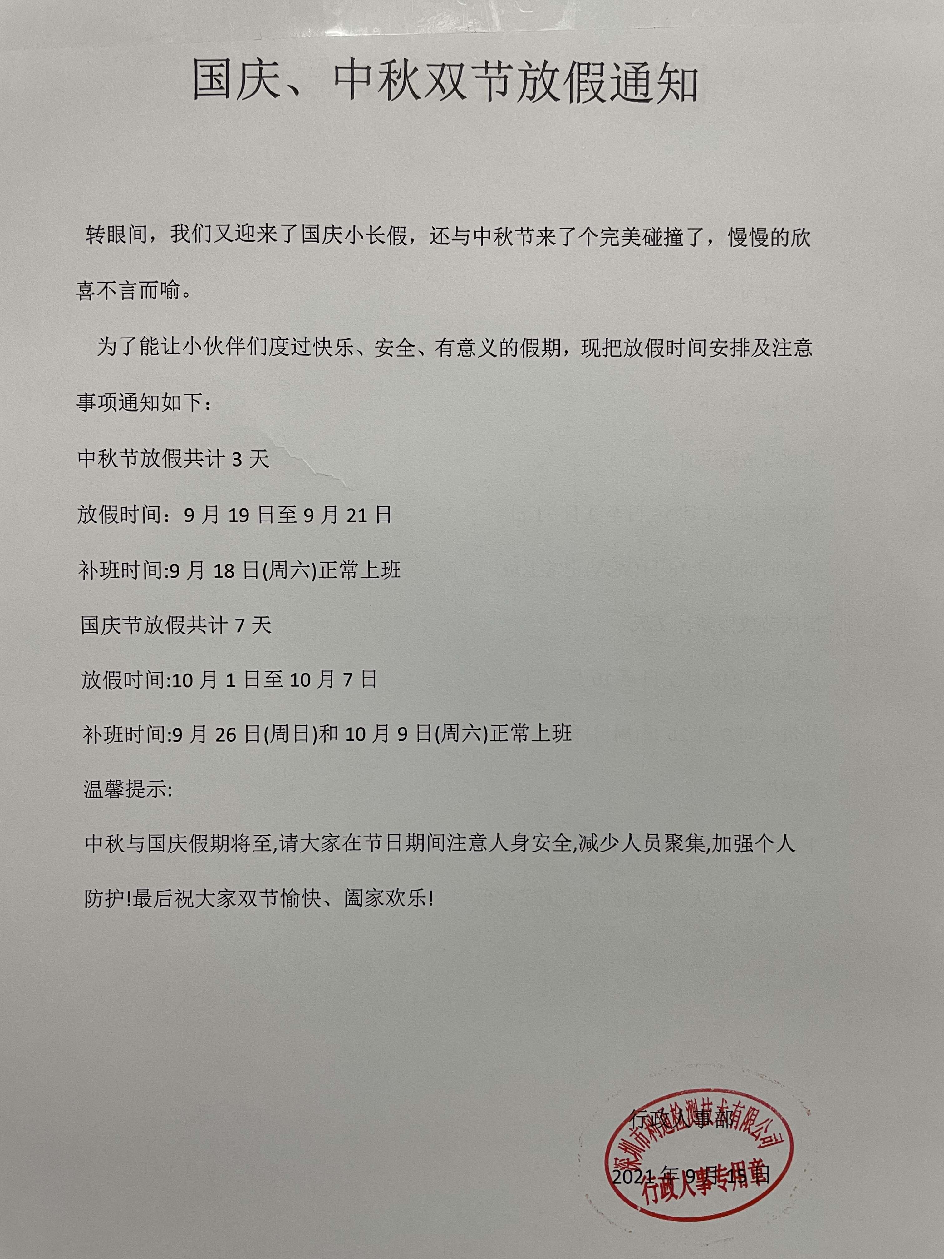 国庆放假通知